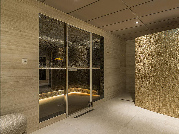 Another stunning sauna from Tylö is the Hammam sauna with beautiful grey and gold mosaic. The steam sauna gives a thick steam and heats up very fast. It is very good for your health, especially your skin. A lovely experience!